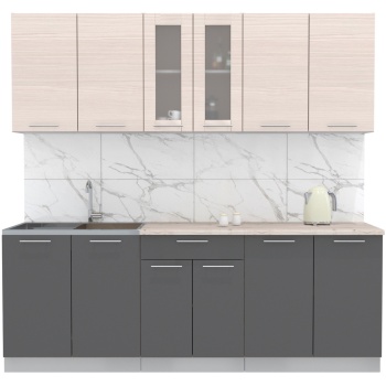 Характеристики: Материал фасадов: ЛДСП (Ламинированная ДСП) Цвет фасада (верх — низ): Вудлайн — Графит Материал корпуса: ЛДСП (Ламинированная ДСП) Цвет