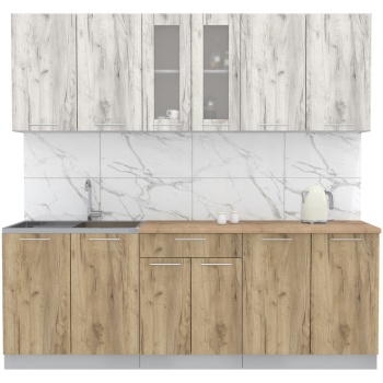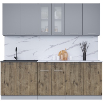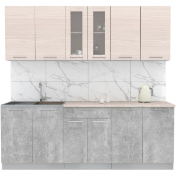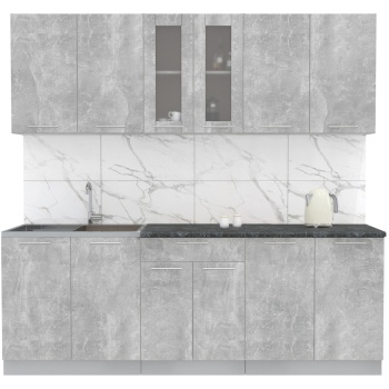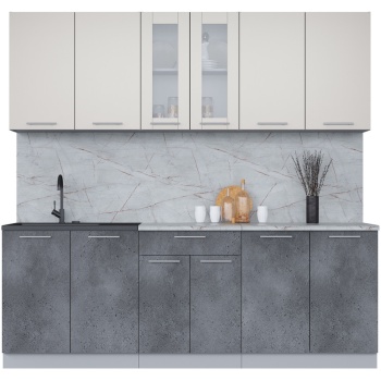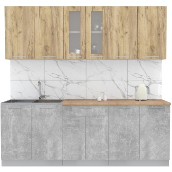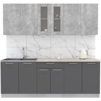 Характеристики: Материал фасадов: ЛДСП (Ламинированная ДСП) Цвет фасада (верх — низ): Бетон Материал корпуса: ЛДСП (Ламинированная ДСП) Цвет корпуса: Серый