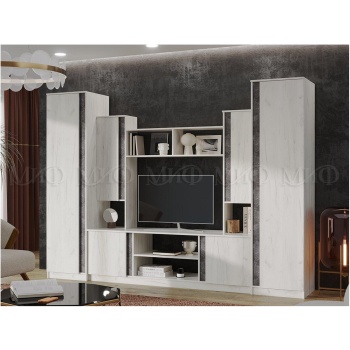 Стенка для гостиной Диаманд Белый — Цемент светлый