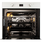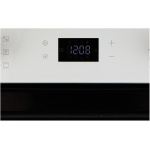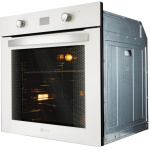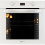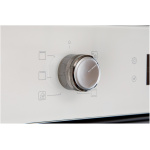 Духовой шкаф выполнен в белом цвете с ручками управления и ручкой дверцы из нержавеющей стали.