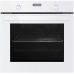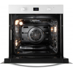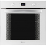 Духовой шкаф выполнен в белом цвете с ручками управления и ручкой дверцы из нержавеющей стали.