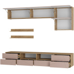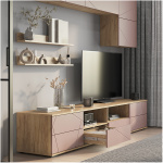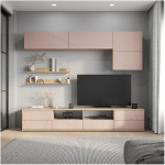 Гостиная «Камелия» — это комплексное решение для уютной гостиной. Разнообразие вместительных зон для хранения позволяет обустроить комфортную зону отдыха. Лаконичный дизайн и нежные оттенки фасадов «шарли пинк» создают атмосферу расслабленности и гармонии. Фрезеровка на фасадах в виде геометрических узоров добавляет динамику в пространство и оживляет его.