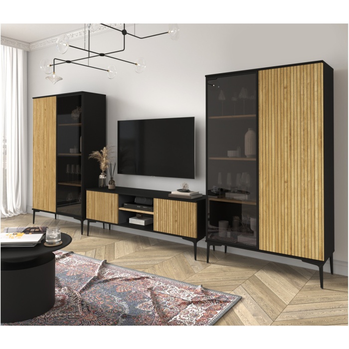 Гостиная Linea-A с подсветкой Черный - Дуб гринвич
