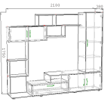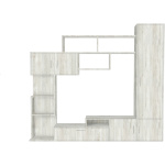 Компактная стенка с асимметричным расположением шкафов и полок. Прекрасно подойдет для рабочих кабинетов, гостиной или зала. В цвет к гостиной можно подобрать комоды и шкафы-купе, выполненные в едином цвете, что позволяет обставить полностью комнату.