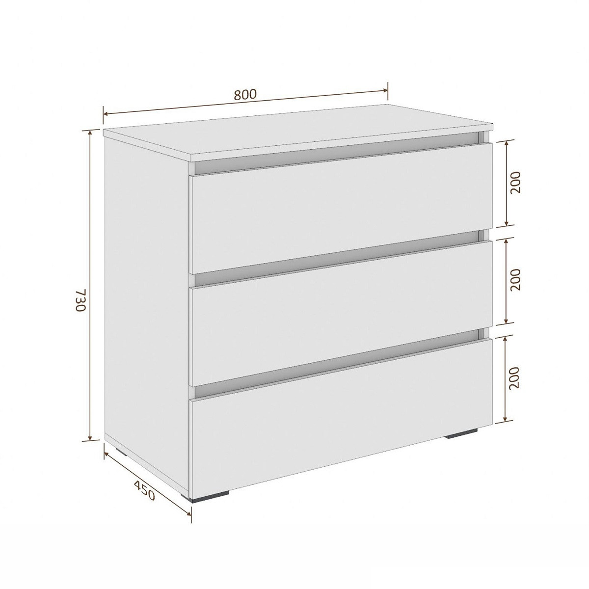 Глубина комода 45 см. делает его удобным для использования даже в небольших жилых комнатах — спальне, детской, гостиной или прихожей.