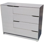 Четыре вместительные выдвижные ящика комода расположены справа, слева — за распашной дверкой отделение с полкой. Универсальной сборки нет.