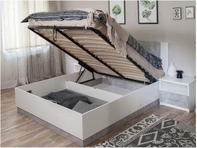 Главная » Магазин » Кровать Аврора 160 с подъемным механизмом Белый-Ателье светлый