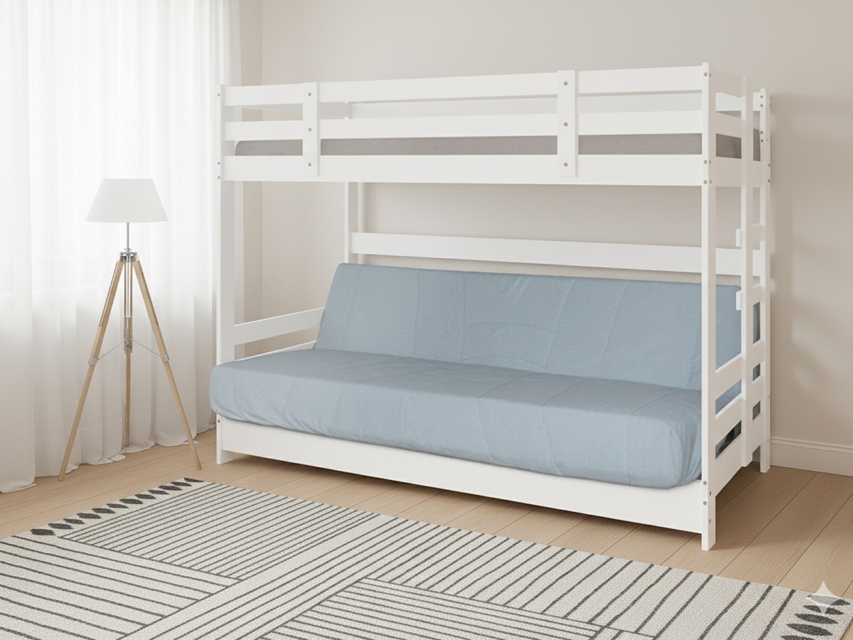 Кровать двухъярусная с диваном-кроватью Массив Белый