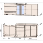 - Высота напольных шкафов с учетом столешницы и ножек: 85.0 см.