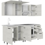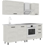 Характеристики: тип мебели — готовый кухонный гарнитур форма — прямой материал/цвет корпуса — ЛДСП белый материал/цвет фасадов — МДФ Бетон снежный
