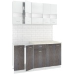 Техническое описание кухни: Общая ширина навесных шкафов: 150.0 см. Общая ширина напольных шкафов: 150.0 см. Высота напольных шкафов с учетом