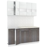 Характеристики: Ширина кухни: 160.0 см. Высота напольных шкафов с учетом столешницы и ножек: 85.0 см. Высота навесных шкафов: 57.0 см.