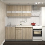 Характеристики: Ширина кухни: 160.0 см. Высота напольных шкафов с учетом столешницы и ножек: 85.0 см. Высота навесных шкафов: 71.5 см. Глубина