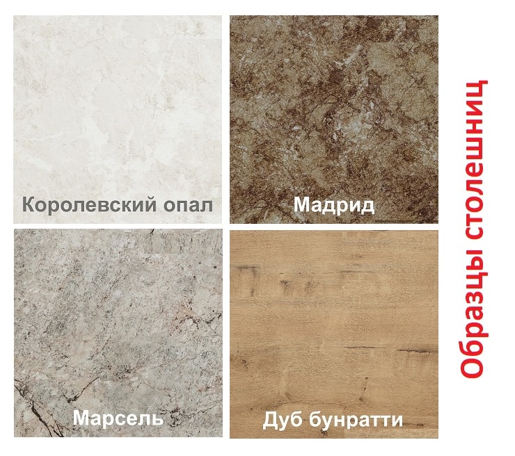 2. Столешница: 60 + 40 см. (цельная по согласованию).