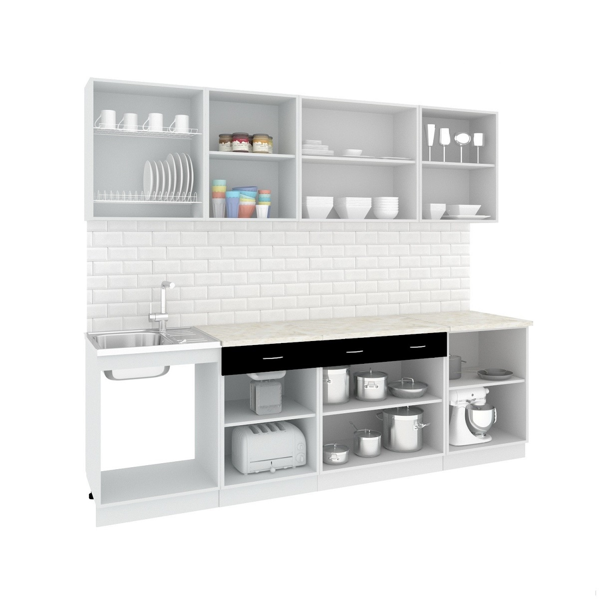 1. Набор шкафов согласно схеме в разобранном состоянии, в упаковке (требуется сборка)