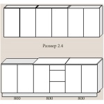Характеристики: Ширина кухни: 240.0 см. Высота напольных шкафов с учетом столешницы и ножек: 85.0 см. Высота навесных шкафов: 57.0 см.