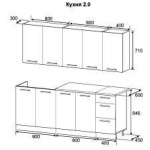 Характеристики: Ширина кухни: 200.0 см. Высота напольных шкафов с учетом столешницы и ножек: 85.0 см. Высота навесных шкафов: 71.5 см. Глубина