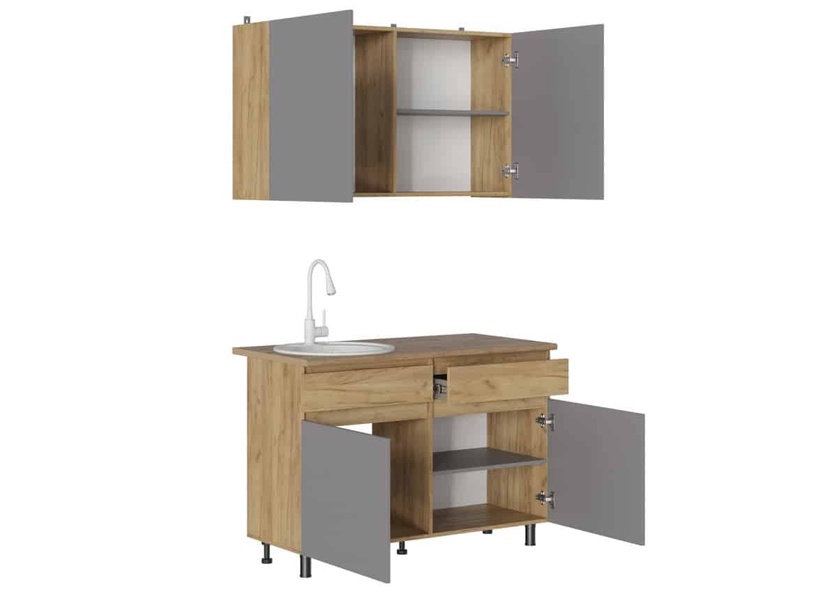 Характеристики: Материал фасадов: ЛДСП (Ламинированная ДСП) Цвет фасадов (верх — низ): Дуб белый — Дуб серый Материал корпуса: ЛДСП (Ламинированная