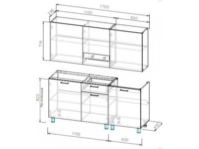 Фасады навесных шкафов не комплектуются ручками. Открываются за нижний торец фасада.