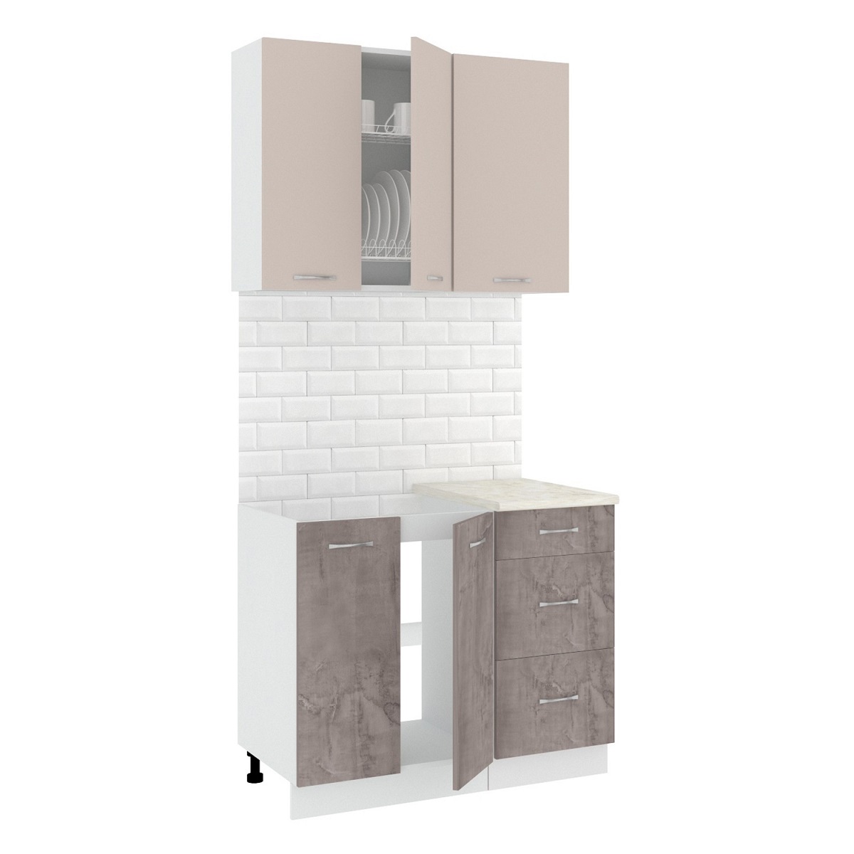 Кухня угловая Мила Лайт 1,2х1,2 м бетон - вудлайн