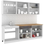 Характеристики: Общая ширина навесных шкафов: 240.0 см. Общая ширина напольных шкафов: 240.0 см. Высота напольных шкафов с учетом столешницы и