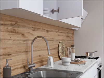 Современный дизайн кухни «Мэри» сочетает в себе лаконичную цветовую палитру, что позволяет легко вписать её в любой интерьер — от минимализма до классики.