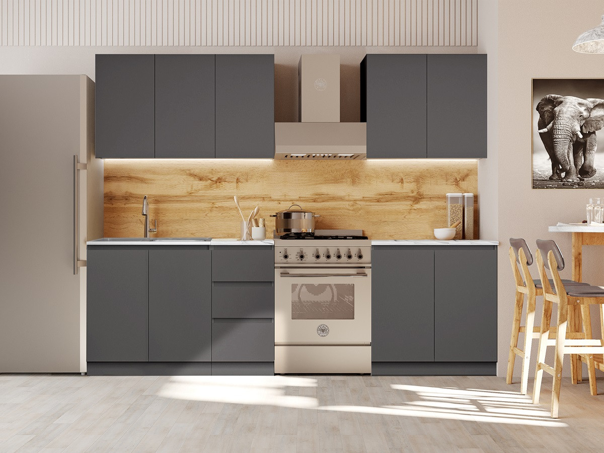 Кухня «Мэри» — это гармония стиля и функциональности, созданная с использованием ЛДСП, что делает её современным и бюджетным вариантом для любого интерьера. Эстетика данного изделия подчеркивается интегрированными ручками, которые обеспечивают удобство в использовании. Роликовые направляющие делают процесс открывания и закрывания шкафчиков легким и бесшумным, что особенно важно в динамичном ритме повседневной жизни.