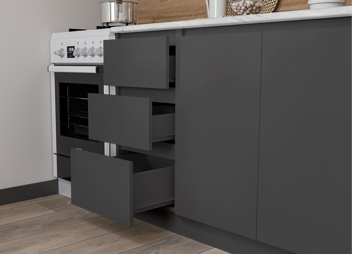 - Глубина напольных шкафов с учетом столешницы: 60.0 см.