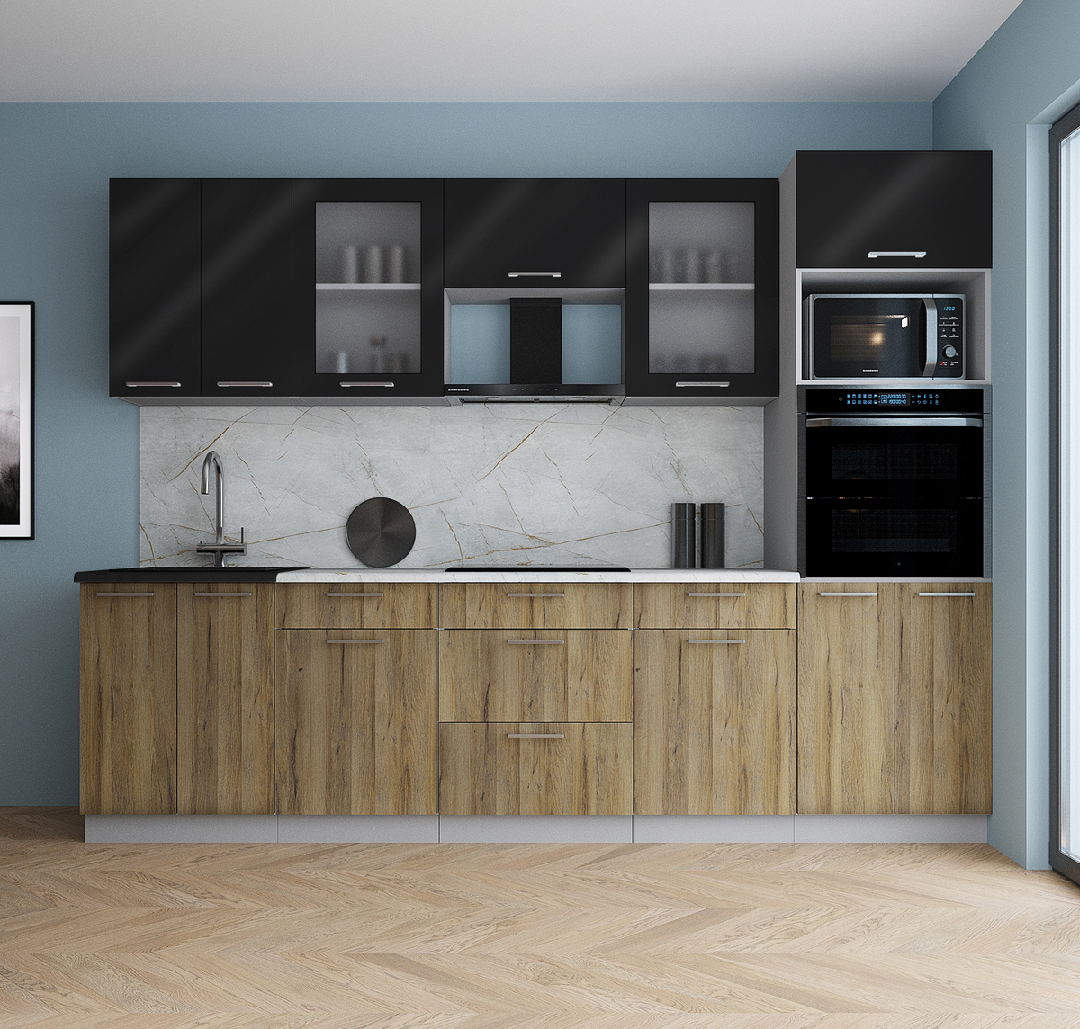 Кухня Мила Глосс 2.8ВТ Черный — Дуб вотан
