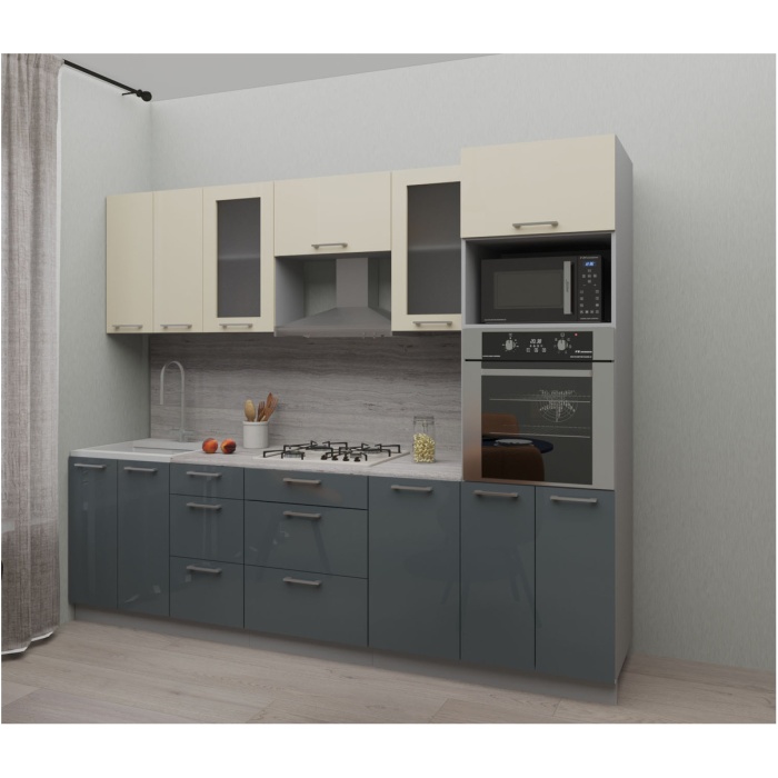 - Высота напольных шкафов с учетом столешницы и ножек: 85.0 см.