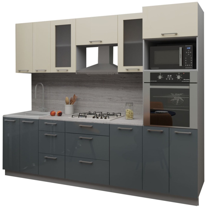 - Цвет фасадов (верх — низ): Ваниль — Асфальт