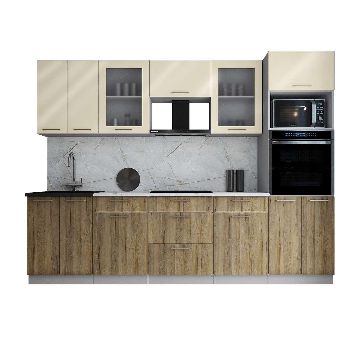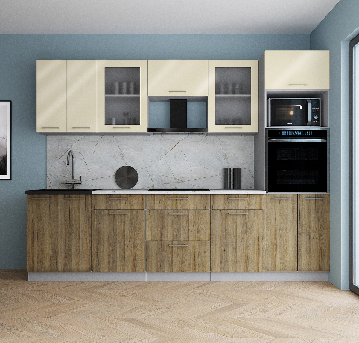 Кухня Мила Глосс 2.8ВТ Ваниль — Дуб вотан