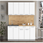Характеристики: Ширина кухни: 150.0 см. Высота напольных шкафов с учетом столешницы и ножек: 85.0 см. Высота навесных шкафов: 72.0 см.