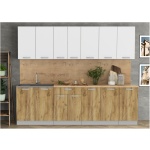 Характеристики: Ширина кухни: 260.0 см. Высота напольных шкафов с учетом столешницы и ножек: 85.0 см. Высота навесных шкафов: 72.0 см.