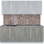 Кухня является модульной. Шкафы возможно менять местами. Возможно заменить шкафы на другие, добавить карго, пенал. К заказу доступна столешница толщиной 38 мм. и другого размера по длине.