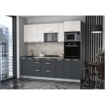Кухня Мила Глосс 3,0 м асфальт — ваниль