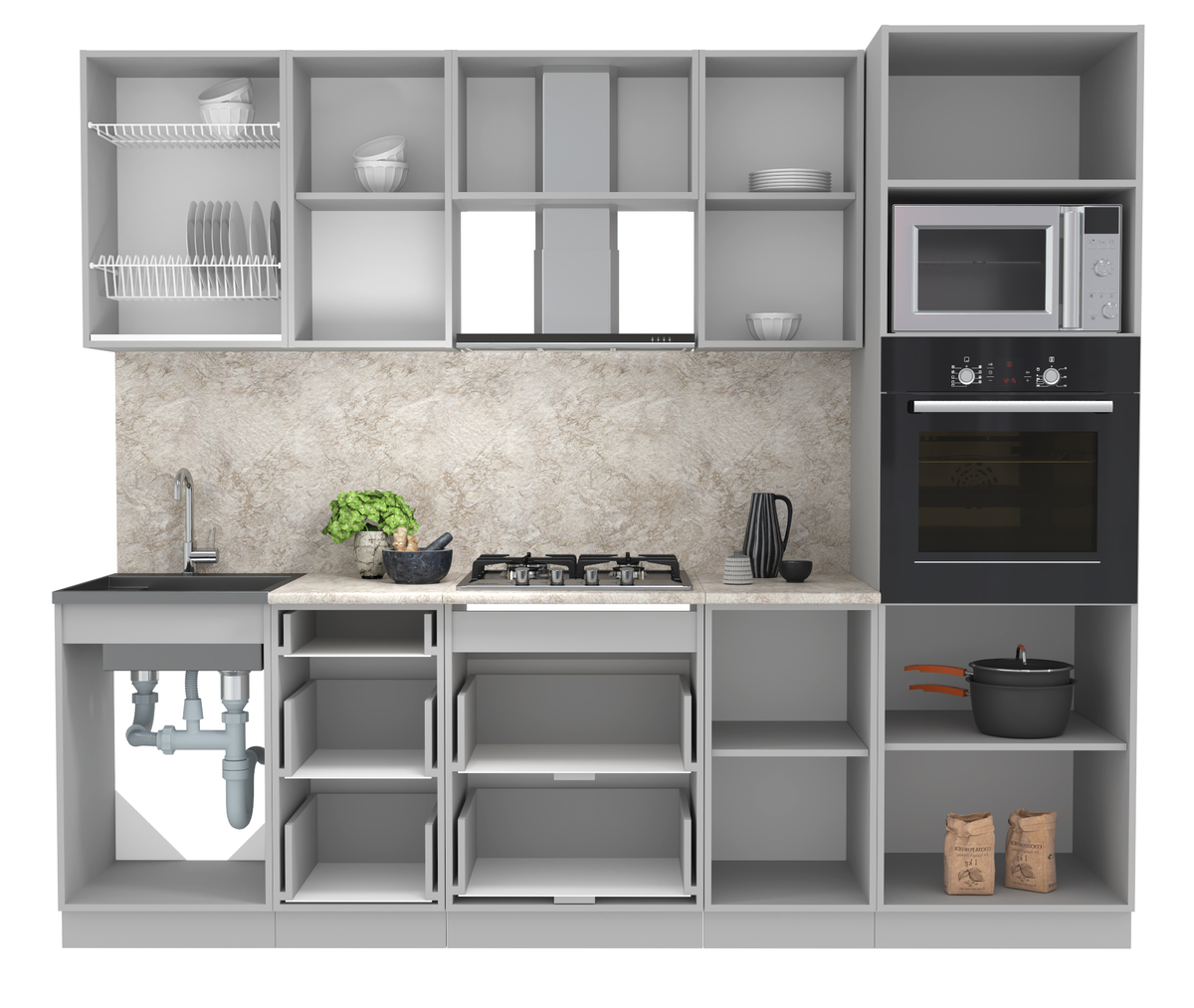 1. Кухня «Мила Лайт» согласно схеме в упаковке, в разобранном состоянии (требуется сборка)