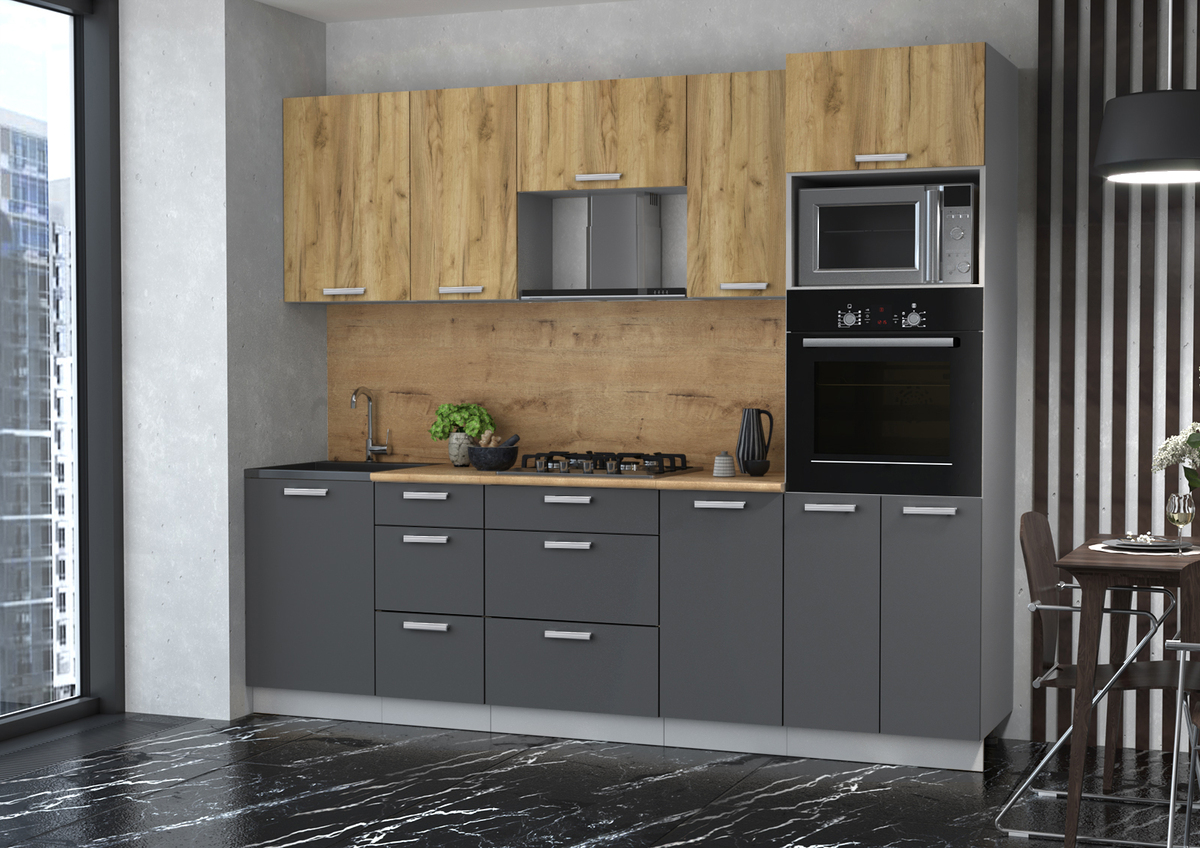 Кухня Мила Лайт 2.5ВТ Вудлайн - Антрацит