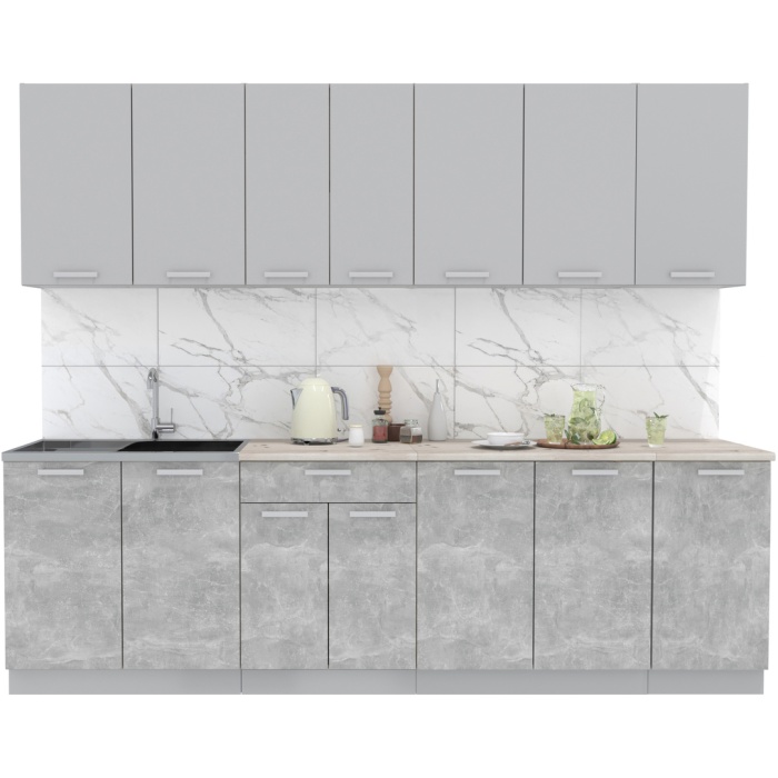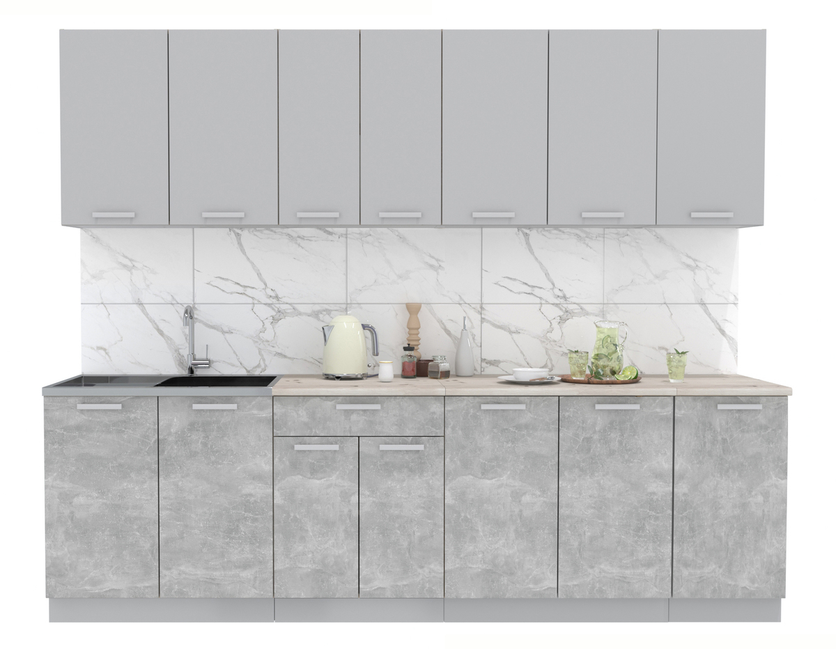 Кухня Мила Лайт 2.6 Серебро — Бетон