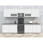 Характеристики: Ширина кухни: 270.0 см. Высота напольных шкафов с учетом столешницы и ножек: 85.0 см. Высота навесных шкафов: 72.0 см.