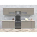 Модульная кухня с фасадами МДФ без ручек шириной 270 см. Матовые фасады Soft открываются нажатием при помощи механизма Tip-On.