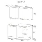 - Высота напольных шкафов с учетом столешницы и ножек: 85.0 см.