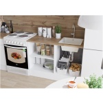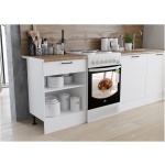 Гарнитур включает в себя просторные секции, которые обеспечивают удобное хранение и легкий доступ к кухонным принадлежностям.