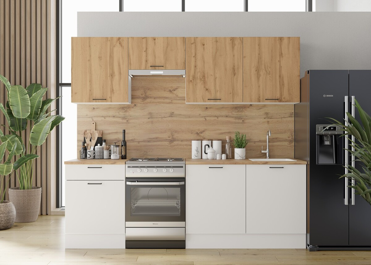 Главная » Магазин » Кухня Paola 2.4м ЛДСП Дуб вотан — Белый