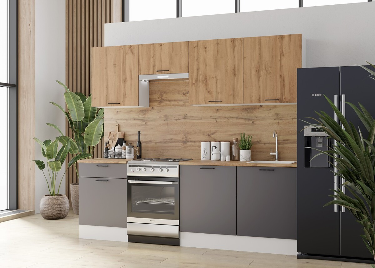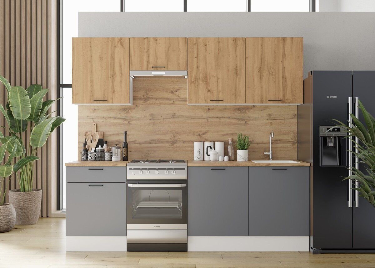 - Цвет фасадов (верх — низ) — Дуб вотан — Графит серый