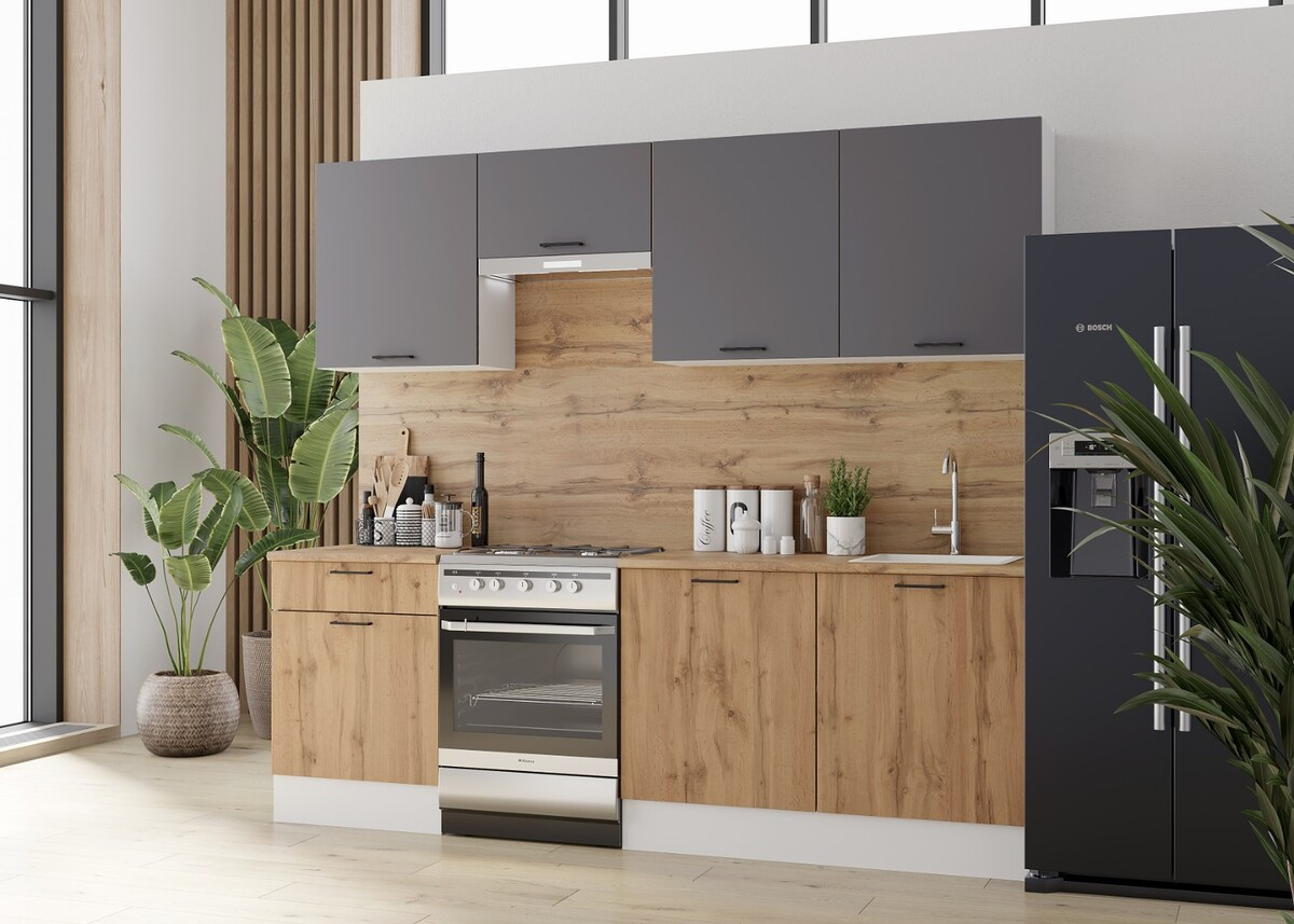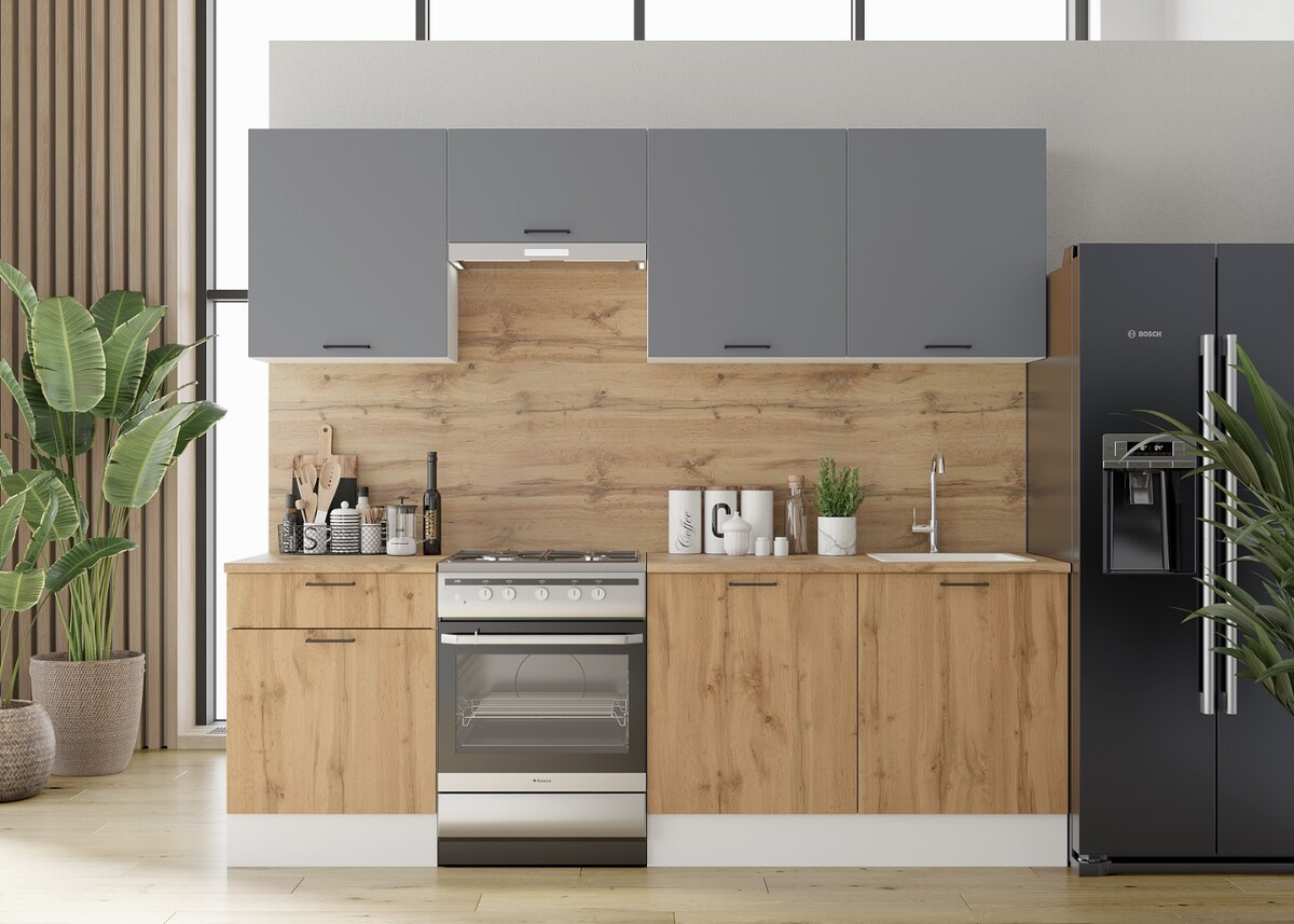 Главная » Магазин » Кухня Paola 2.4м ЛДСП Графит серый — Дуб вотан