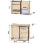 • Общая ширина напольных шкафов: 1000 мм.(500 + 500)