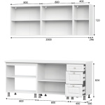 Техническое описание кухни: Общая ширина навесных шкафов: 3000 мм. Общая ширина напольных шкафов: 3000 мм. Высота напольных шкафов с учетом