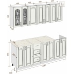 Техническое описание кухни: Общая ширина навесных шкафов: 3000 мм. Общая ширина напольных шкафов: 3000 мм. Высота напольных шкафов с учетом
