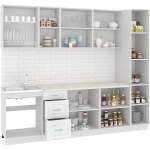 Характеристики: Ширина кухни: 260.0 см. Высота напольных шкафов с учетом столешницы и ножек: 85.0 см. Высота навесных шкафов: 72.0 см.